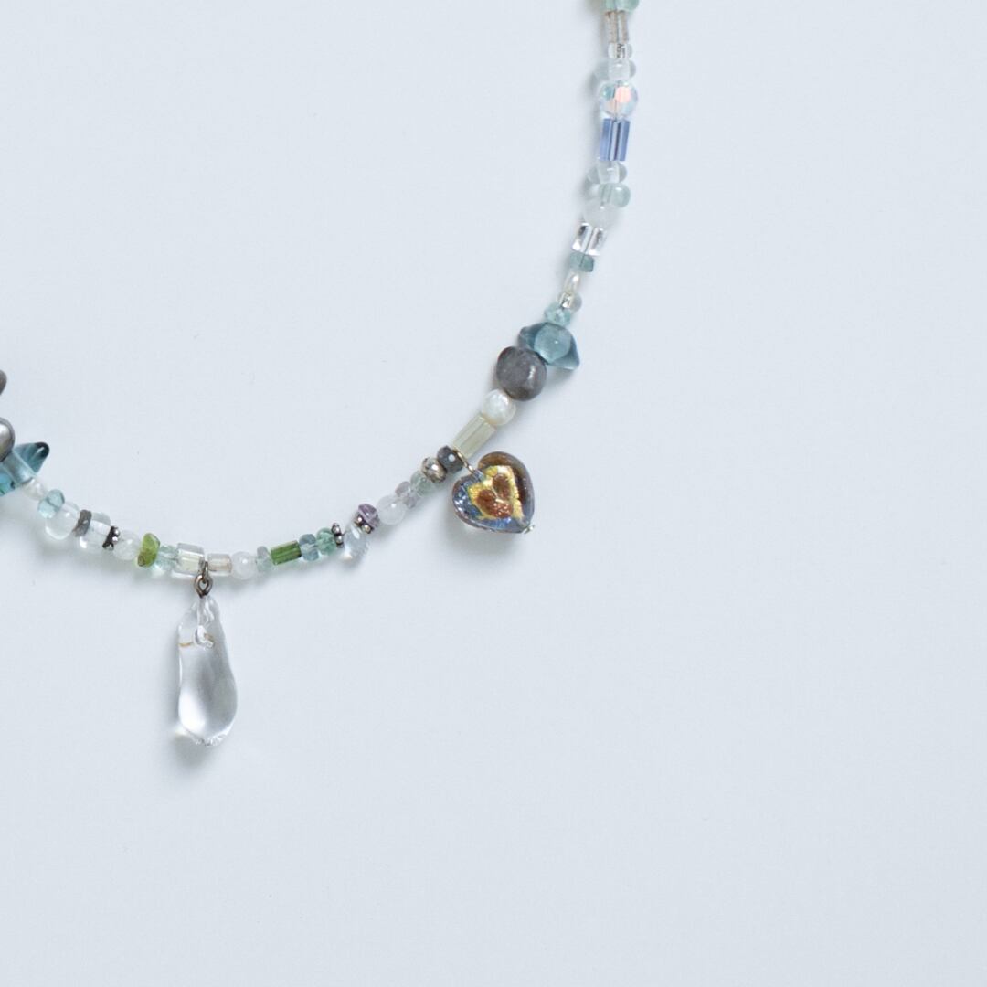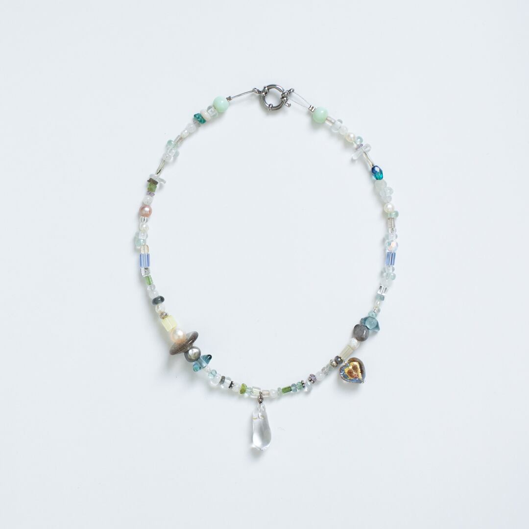 素材:手作りガラス、シルバー975、パール、インペリアルジャスパー、水晶、アメジスト、ムーンストーン、フローライト、ラブラドライト、トルマリン、チェコガラスビーズ、ヴェネチアガラスビーズ、ボルネオガラスビーズ、インドガラスビーズ